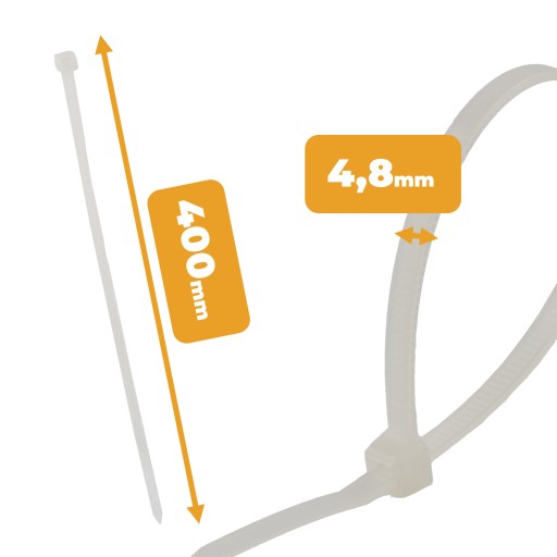MOCNE OPASKI ZACISKOWE KABLOWE TRYTKI BIAŁE TAŚMA 4,8x400 100SZT ZIPERKI