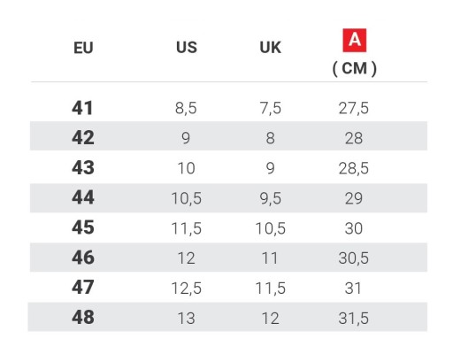 A: DŁUGOŚĆ WKŁADKI - Zmierz odcinek od początki do końca wkładki butów, w których najwygodniej się czujesz