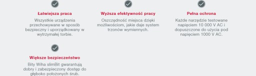- dzięki Wiha slimTechnology, slimBity z ich trzonkami węższymi do 33% dosięgają również do głęboko położonych śrub i sprężyn