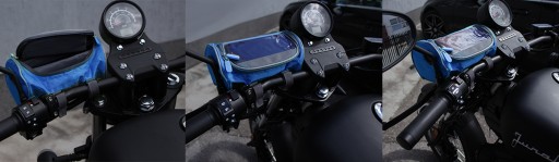 Torba zamykana jest na zamek z dwoma suwakami. Górna część torebki posiada miejsce na telefon lub nawigację z przezroczystym oknem wykonanym z tworzywa PVC. Przezroczyste okno pozwala na sterowanie telefonem zarówno z ekranem dotykowym. Miejsce na telefon wyłożone gąbką PE oraz zapinana mocnym rzepem zabezpieczającym przed przypadkowym wysunięciem telefonu. W dolnej części miejsce na dokumenty, klucze lub inne przedmioty.
