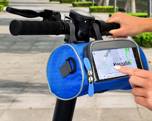 Sakwa z funkcją torebki na telefon i inne akcesoria,montowana na kierownicę, ramę, bagażnik do roweru, motocyklu lub innych pojazdów.