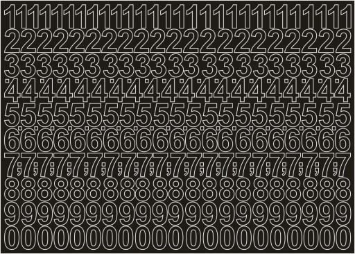 Główne zdjęcie produktu ma charakter poglądowy. W rzeczywistości, znaki na arkuszu nie posiadają obwódki (widoczny jest jedynie wycięty zarys cyfry).