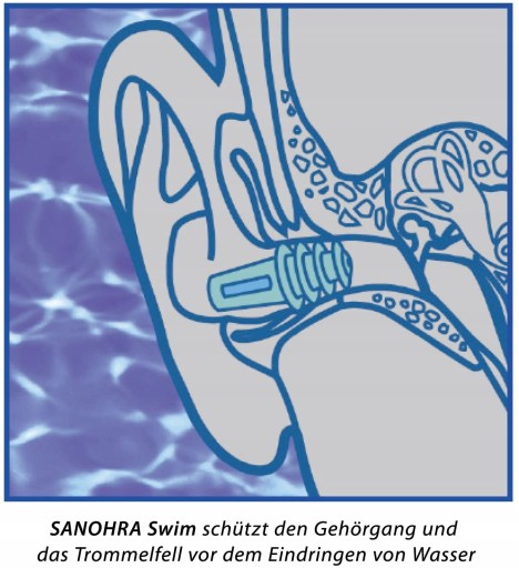 Zatyczki Niemieckie firmy SANOHRA swim dla dzieci do pływanie, kąpieli pod prysznic.