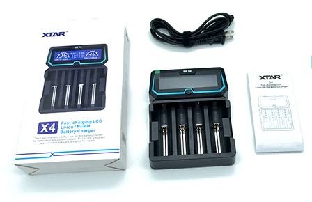 X4 to profesjonalna procesorowa ładowarka z trzystopniowym procesem ładowania TC/CC/CV i wyświetlaczem LCD. Ładuje 1-4 ogniwa Li-ion 3,6 / 3,7V oraz Ni-MH o dowolnej pojemności w rozmiarach AAA/R03, AA/R6, R14/C, 14500, 14650, 16340, 17500, 17670, 18350, 18500, 18650, 18700, 20700, 21700, 22650, 25500, 26650.