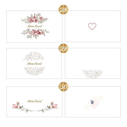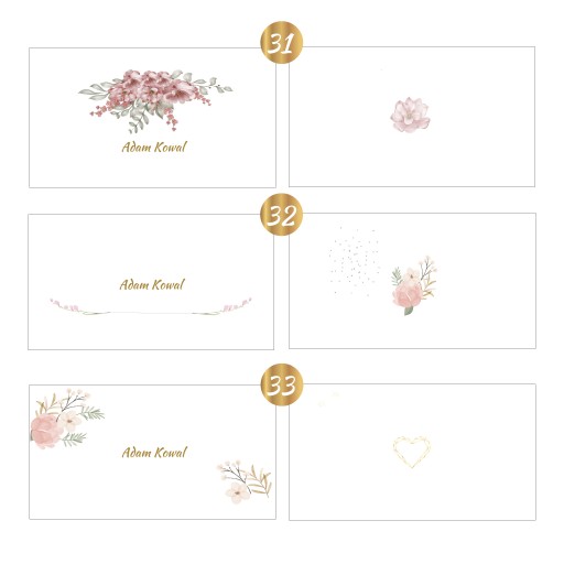 Wszystkie wzory pasują do naszych zaproszeń. Kolejność winietek jest zgodna z zaproszeniami.