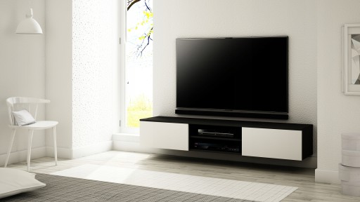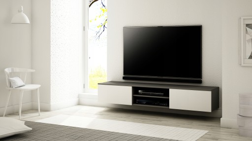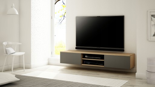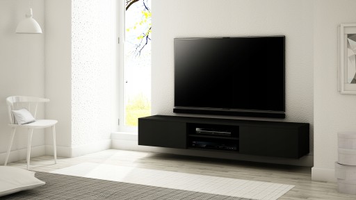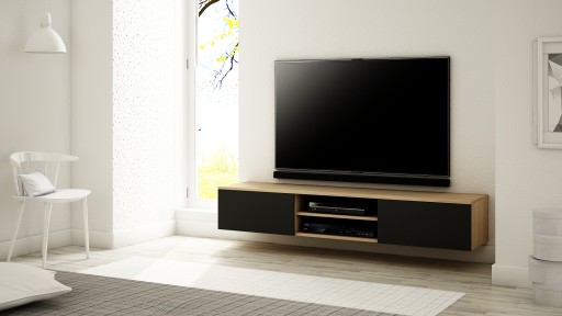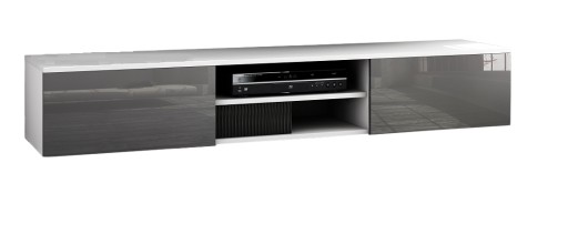 OPIS: W/S/G 30/180/35 cm- korpus oraz fronty w macie, po środku regulowana półka na sprzęt RTV, dwie przestronne komory otwierane dotykowo TIP-ON (bez uchwytu) o szerokości 60 cm, płyta tylna szafki wykonana z HDF.