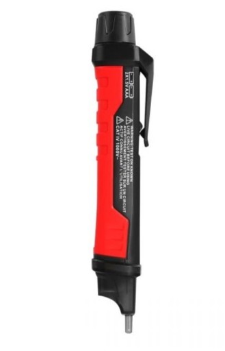 Wystarczy umieścić głowicę czujnika w pobliżu obiektu testowego lub w gniazdku prądu zmiennego. Po wykryciu napięcia zmiennego czerwona dioda LED na końcówce zaświeci się i rozlegnie się dźwięk brzęczyka.