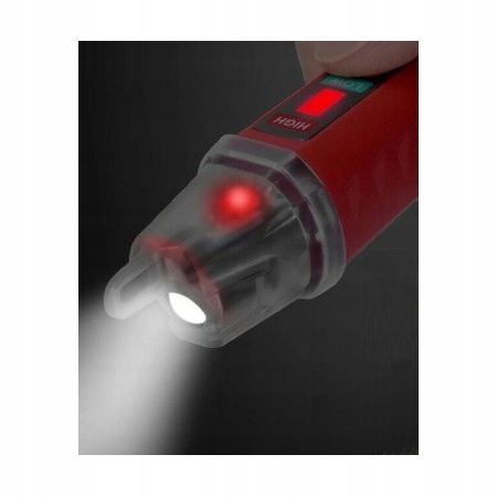 Bezdotykowy wykrywacz napięcia AC posiada dodatkowo wbudowaną latarkę co pozwoli na pracę np. w miejscach ze słabym oświetleniem. Wbudowana sygnalizacja akustyczno-optyczna z synchroniczną funkcją ostrzegania ułatwi kontrolę lub wykrycie napięcia bez obserwowania wskaźnika diodowego.