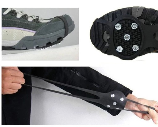 - Elastyczne gumowe nakładki na buty z kolcami antypoślizgowymi