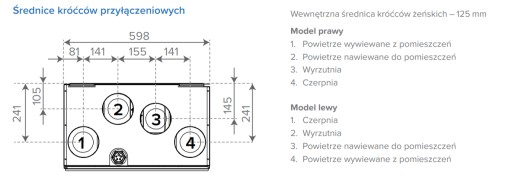 - Filtry – nawiew: ISO Coarse > 75% + ePM1 ≥ 50%, wywiew: ISO Coarse >75%