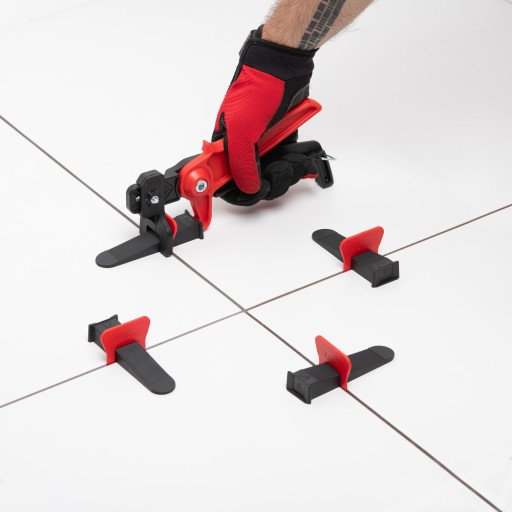 - Jednorazowe klipsy regulują szerokość fugi utrzymując ją w jednym powtarzalnym schemacie.