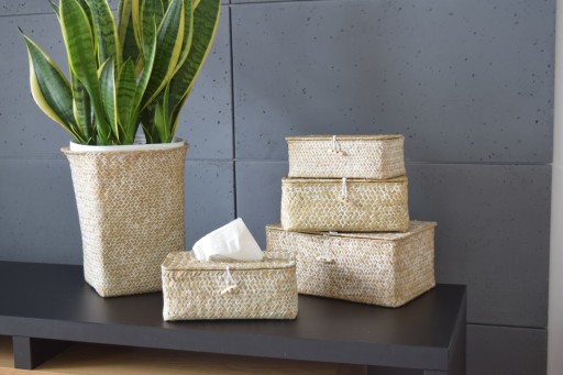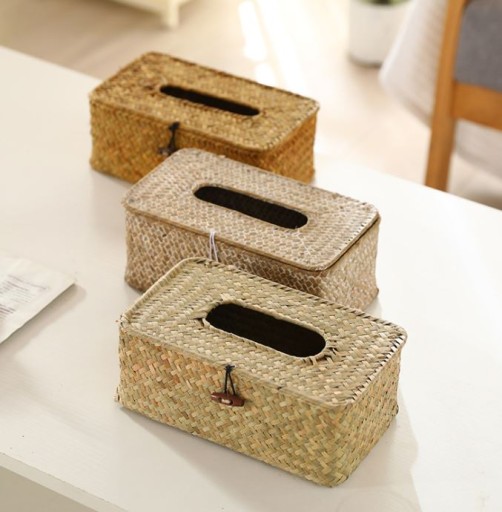 Stylowy i praktyczny pojemnik na chusteczki wykonany z naturalnej trawy morskiej