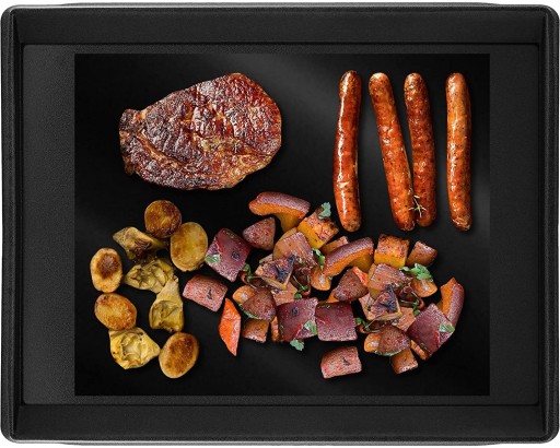 - 100% nieprzywierająca i nadaje się do ponownego użytku. Mata do grillowania składa się z włókna szklanego jest gładka i nie powoduje żadnych uszkodzeń lub struktur.