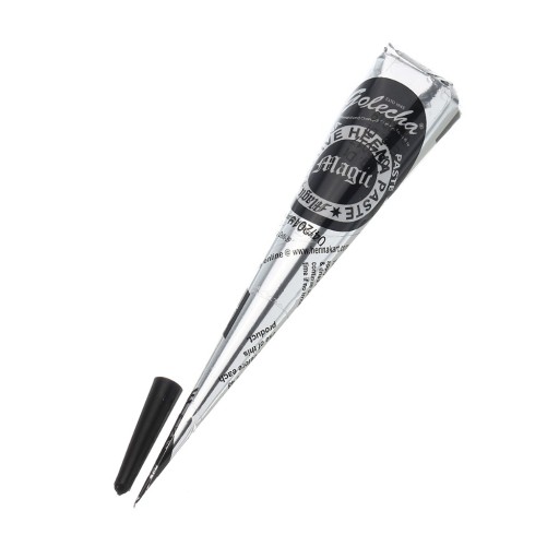 Gotowa pasta Mehendi jest bardzo prosta w użyciu – nie ma potrzeby odwiedzania drogich salonów, wystarczy odkręcić aplikator, usunąć srebrną folie zabezpieczającą i założyć aplikator z powrotem.