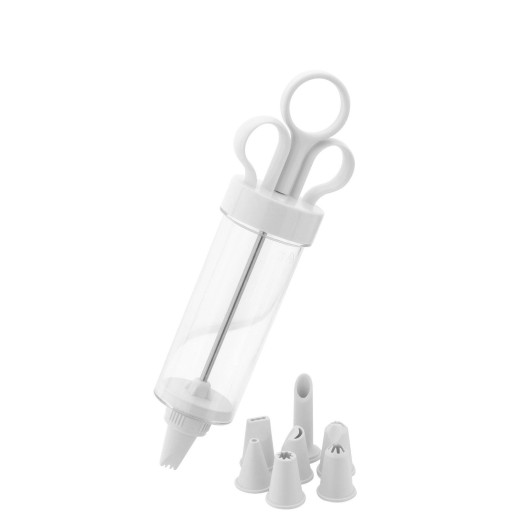 Dekorator do ciast to idealne narzędzie kuchenne do wykończenia ciast, ciasteczek tortów i nie tylko. Wykonany z wytrzymałego tworzywa sztucznego posiada wymienne końcówki do dekoracji. Zestaw zawiera 1 strzykawkę i 8 wymiennych tylek. Można myć w zmywarce ale najlepiej ręcznie.