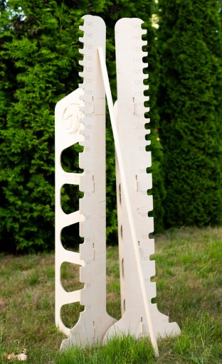 Oferujemy Państu PRZESZKODĘ składającą się z dwóch stojaków wykonanych z drewnianej sklejki; oraz jednej belki wykonanej z drewna.