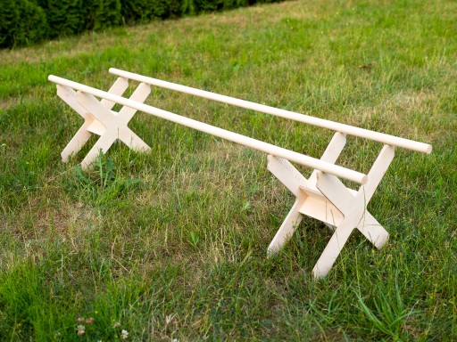 Oferujemy Państu Zestaw PRZESZKÓD składający się z: przeszkody 150 cm ( dwa stojaki wykonane z drewnianej sklejki; oraz jednej belki wykonanej z drewna ) oraz zestawu kawaletek ( dwie kawaletki wykonane z drewnianej sklejki; oraz jednej belki wykonanej z drewna )