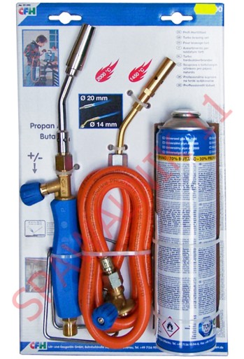 Profesjonalny zestaw niemieckiej firmy CFH. Służy do lutowania miękkiego i twardego, wyposażony jest w turbo palnik i palnik do lutowania precyzyjnego. Można go podłączyć do butli z gazem zamieszczonej w zestawie oraz do zwykłej butli gazowej z propanem (należy wtedy zastosować reduktor dostępny również na naszych aukcjach).