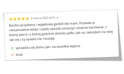 Kolor opaski został tak dobrany, aby przyciągał wzrok, dzięki temu sama opaska będzie o sobie przypominała aby oznaczyć porę karmienia.