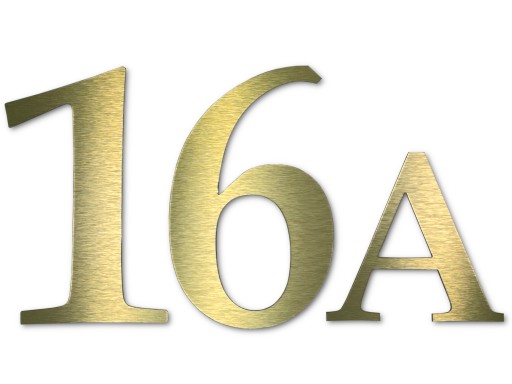 Materiał: Aluminium (dibond) szczotkowany w kolorze złotym. Grubość 3mm, odległość od ściany to aż 16mm. Materiał jest w 100% odporny na warunki atmosferyczne i z powodzeniem może być użyty na zewnątrz.