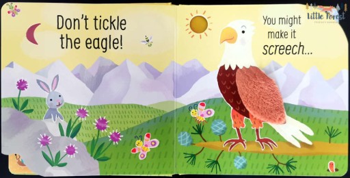 „Don’t Tickle the Bear!” to rewelacyjne połączenie książki sensorycznej i dźwiękowej w jednym! Sprawdź co stanie się gdy połaskoczesz niedźwiedzia, wilka, czy też łosia. Baw się, ucz i poznawaj odgłosy zwierząt.