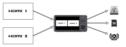 Jednoczesne przechwytywanie dwóch sygnałów HDMI. Możliwy zapis na dysk USB, kartę SD oraz transmisja do komputera w celu streamingu online