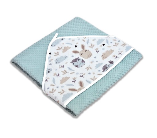 Posiadany kapturek i miękka naturalna tkanina o wyjątkowej strukturze wafla zamieni zwykły ręcznik również w praktyczny otulacz, kocyk czy matę do zabawy.