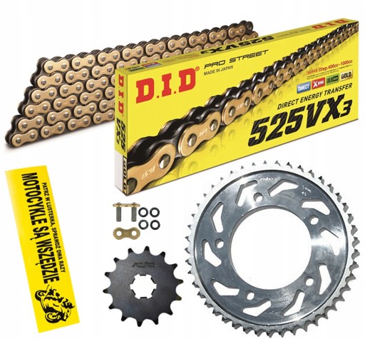 - łańcuch: DID 525 VX3 110 G&B (w komplecie zakuwka)