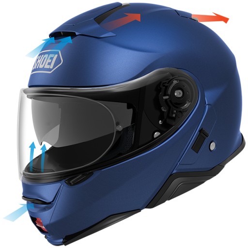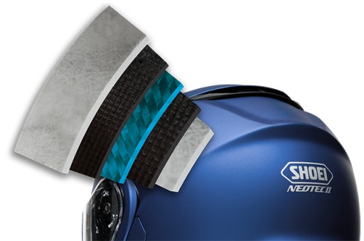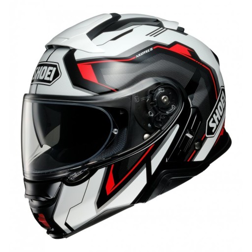 SHOEI NEOTEC II posiada podwójną homologację na kask otwarty i zamknięty. System bezpiecznej blokady szczęki 360º wykonany z wysokiej jakości stalowych elementów zapewnia bezpieczne zamknięcie, dodatkowe położenie zatrzaskowe szczęki umożliwia bezpieczną jazdę z podniesioną szczęką.