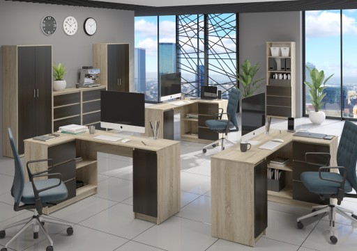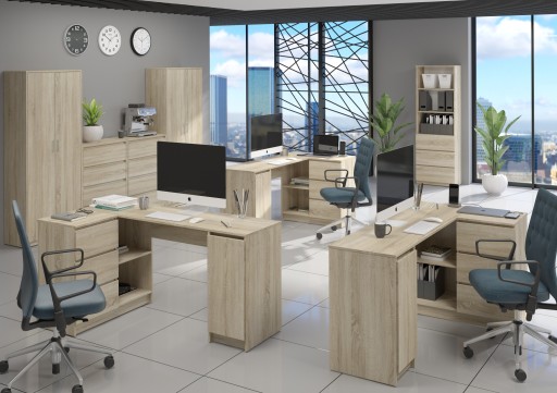 - Fronty w kolorze biały mat, korpus w kolorze dąb sonoma.