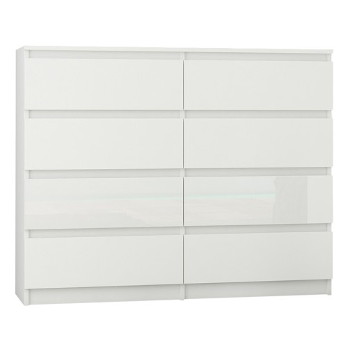 КОМОД 120 СМ ШКАФ С 8 ЯЩИКАМИ БЕЛЫЙ ГЛЯНЦЕВЫЙ