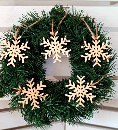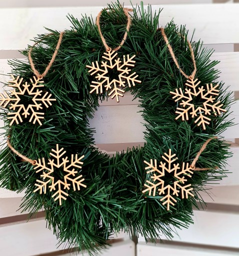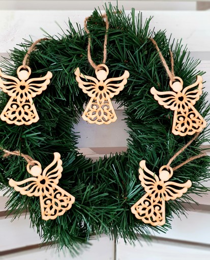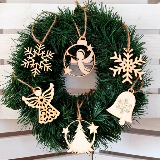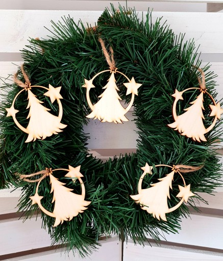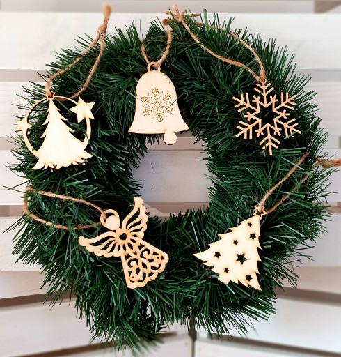 - Świąteczne, drewniane zawieszki na naturalnym sznureczku.