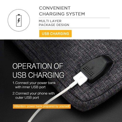 Zewnętrzne gniazdo USB: umożliwia wygodny system ładowania, w przedniej kieszeni znajduje się odpinany kabel, do którego możesz podpiąć power bank (nie w zestawie), a następnie łatwo naładować swój sprzęt, podłączając do portu USB podczas pracy lub przenoszenia.