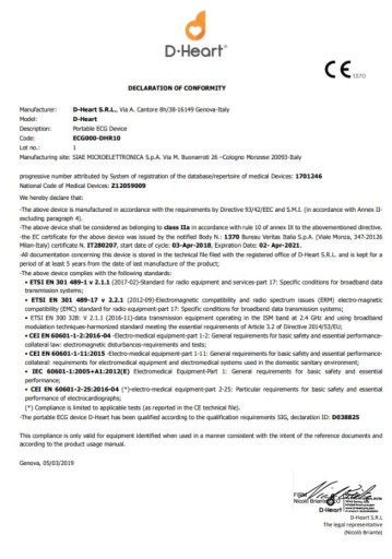 Urządzenie D-Heart jest profesjonalnym, mobilnym elektrokardiografem na poziomie urządzeń szpitalnych. Jest to jedyne EKG na Świecie o tak małych rozmiarach przy jednoczesnym zachowaniu bardzo wysokiej dokładności pomiaru.