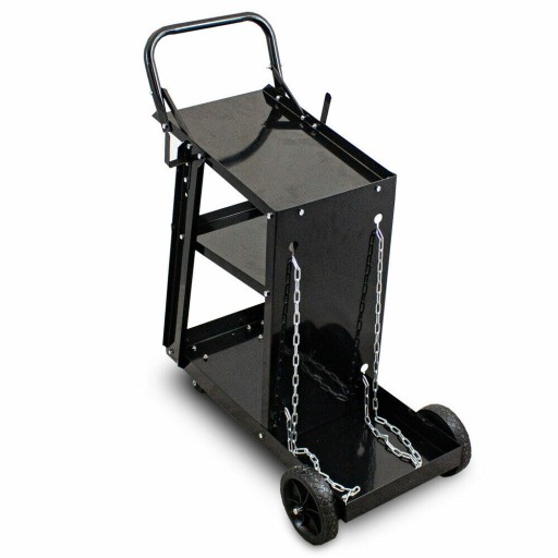 Solidny i stabilny wózek spawalniczy doskonale nadaje się do transportu urządzeń spawalniczych, butli gazowych, falowników i innych akcesoriów. 3 półki zapewniają wystarczająco dużo miejsca do przechowywania wszystkich niezbędnych przy wykonywanej pracy narzędzi. Butlę z gazem można umieścić z przodu wózka oraz zabezpieczyć dwoma łańcuchami. Komfort transportu wózka oraz zwrotność zapewniają 2 duże koła oraz 2 kółka skrętne. Wózek wykonany z wysokiej jakości stali przeznaczony jest do udźwigu maksymalnego 40kg.