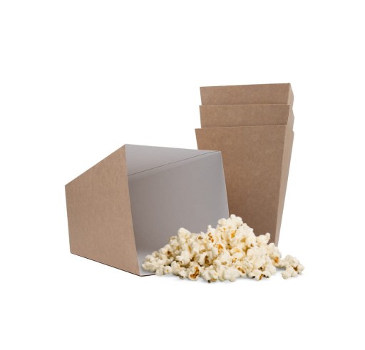 Papierowe kubełki na popcorn, słodycze, kawałki kurczaka i inne przekąski. Są pojemne, a przy tym poręczne.