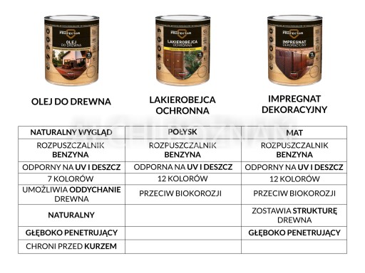 - Impregnat barwi drewno nadając mu satynowy blask.
