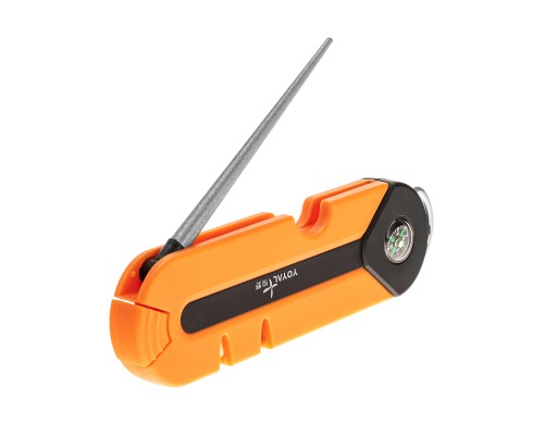 Taidea TY1808 to wielofunkcyjna ostrzałka turystyczna wyposażona w 3 strefy ostrzenia, gwizdek alarmowy, kompas oraz stalowy zaczep.