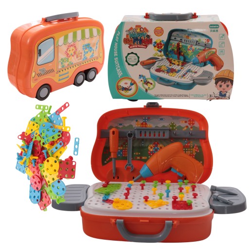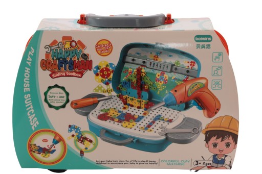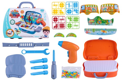 Dziecko za pomocą elementów, śrubek, śrubokrętu i wkrętarki może samodzielnie zbudować ciekawe konstrukcje i obrazki. Elementy zestawu można dowolnie i wielokrotnie ze sobą łączyć, przykręcać, rozkręcać przy pomocy dołączonej do zestawu wkrętarki. Całość zapakowana w estetyczną walizeczkę w kształcie samochodziku.