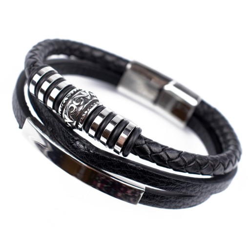 Bransoletka MĘSKA STAL SZLACHETNA 316L SKÓRA - 37569