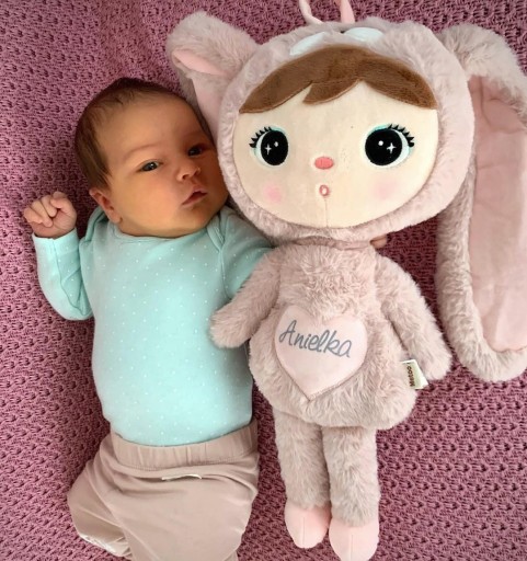 Lalka Metoo Króliczek może zostać na życzenie spersonalizowana czyli możemy umieścić na niej imię obdarowywanego dziecka oraz metryczkę.