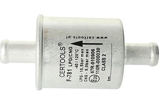 Filtr fazy lotnej CERTOOLS - F-781 14/14 mm (bulpren, jednorazowy) jest montowany pomiędzy reduktorem, w którym następuje zmiana stanu skupienia LPG z ciekłego na gazowy (powstaje faza lotna) a listwą wtryskiwaczy LPG, która dawkuje paliwo gazowe (fazę lotną) do kanałów dolotowych poszczególnych cylindrów silnika dostosowanego do zasilania LPG.