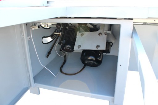 - wygodny, wykonany z aluminium przesuwny stół formatowy z hartowanymi, stalowymi prowadnicami prętowymi,
