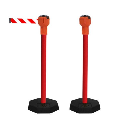 Słupki odgradzające z taśmą są wykonane ze stali i stabilnej, gumowej podstawy. Umożliwiają stałe lub tymczasowe wygrodzenia terenu.