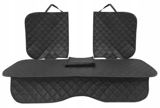 Pokrowiec zasłania całą powierzchnię kanapy samochodowej za i pod fotelikiem