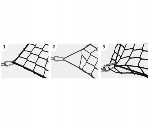 - Siatka sprzedawana jest z karabińczykami w standardowym położeniu (1).