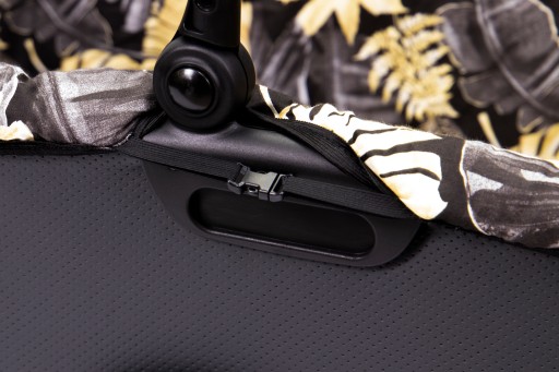 - A-Materacyk posiada specjalny dwustronny zaczep do zaczepiania o oparcie gondoli w celu zapobiegania zsuwania się materaca