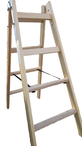 Drabina malarska wykonana jest z drewna sosnowego ,szczeble wykonane z drewna bukowego. .Bardzo przydatnym udogodnieniem jest wytrzymały metalowy haczyk do zawieszenia wiadra lub niezbędnych narzędzi.Drewniana drabina jest zabezpieczona przed niepożądanym rozsunięciem przez pasy trwale zamocowane w bocznych profilach drabiny.Dwa górne stopnie ustawione pionowo.Pozostałe stopnie ustawione poziomo ryflowane co nadaje im właściwości antypoślizgowe