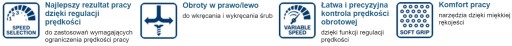 - Prędkość obrotowa bez obciążenia: 0 - 2800 min-1