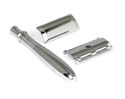 Tradycyjna maszynka do golenia na żyletki z długą rączka na stojaku MAG-3.1